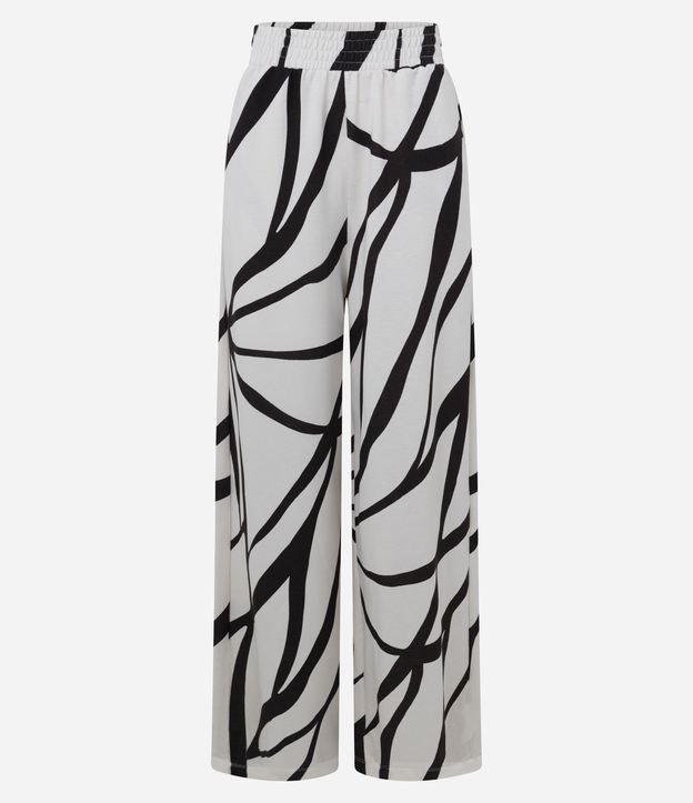 Calça Reta Comprida com Estampa Abstrata Branco/Preto