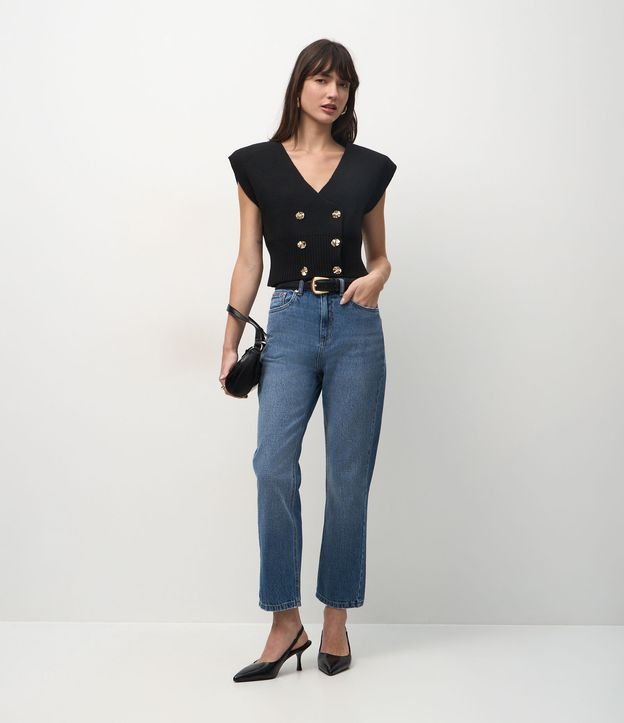Calça Reta Cropped em Jeans com Cintura Alta