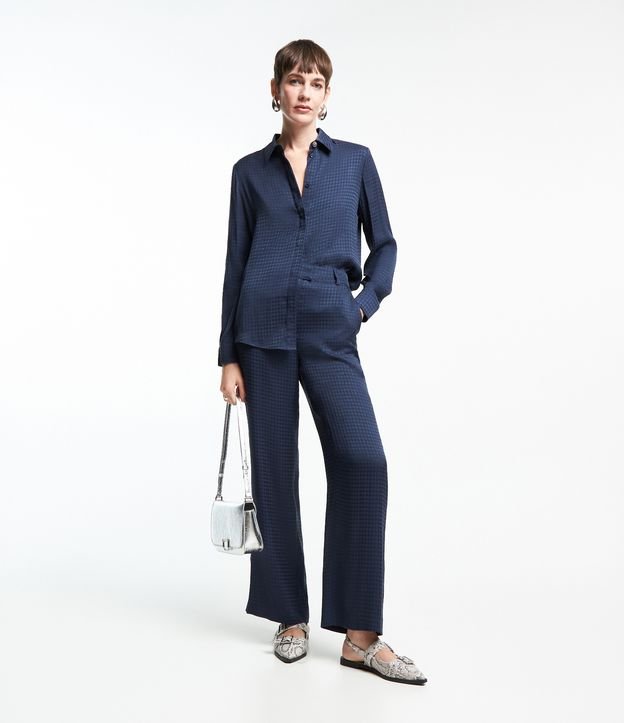 Calça Reta em Jacquard com Cós Alfaiatado e Estampa Pied de Poule