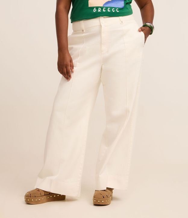 Calça Reta em Jeans com Cós Alfaiataria e Botão Forrado Curve & Plus Size Off White
