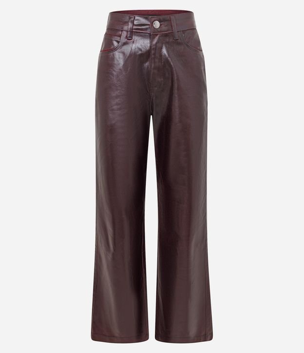 Calça Reta em Jeans Resinado com Cintura Alta Bordô