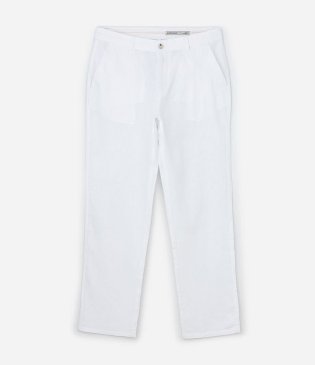 Calça masculina confeccionada em linho mais sustentável em alfaiataria no modelo reto, possui passantes no cós, fechamento tradicional e bolsos.