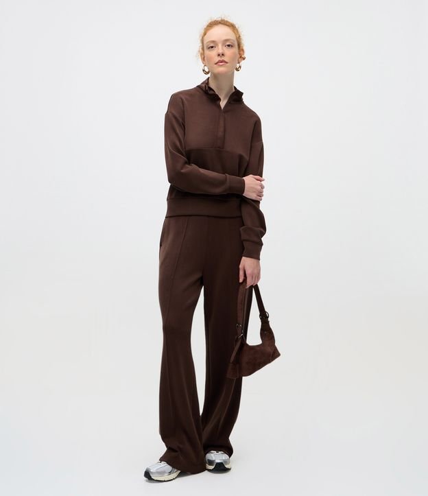 Calça Reta em Modal com Cintura Alta Marrom