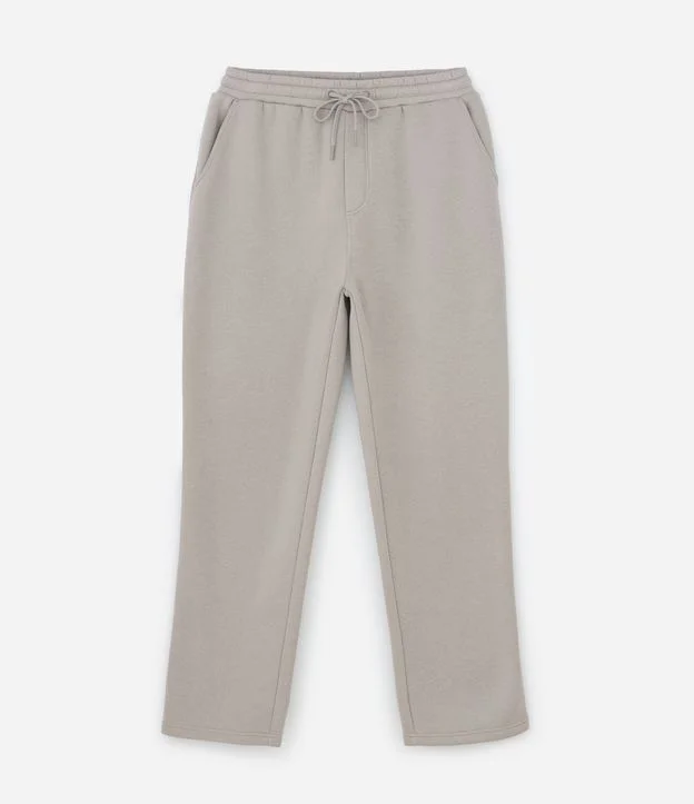 Calça Reta em Moletom com Bolsos e Amarração no Cós Cinza