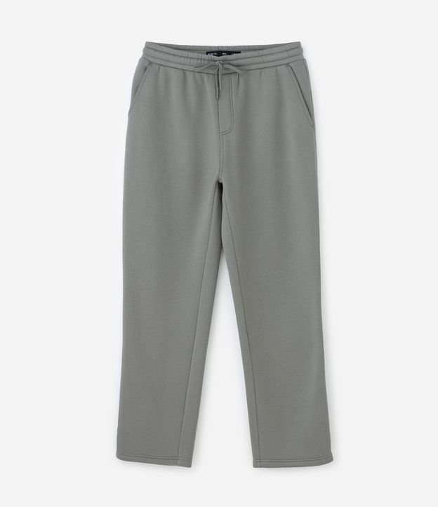 Calça reta em moletom, com cós elástico, bolsos e superfície sem estampa.
