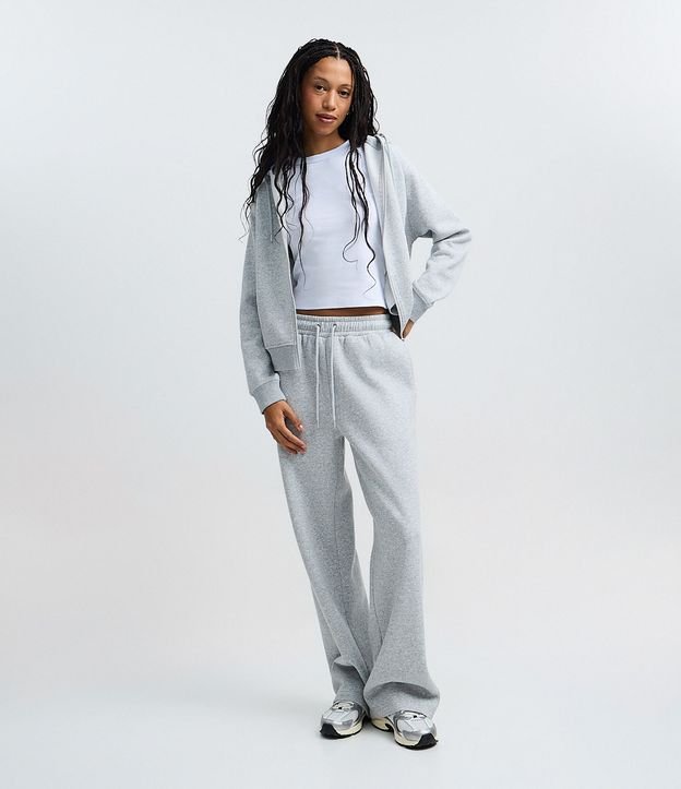 Calça Reta em Moletom com Felpa e Cós Ajustável Cinza