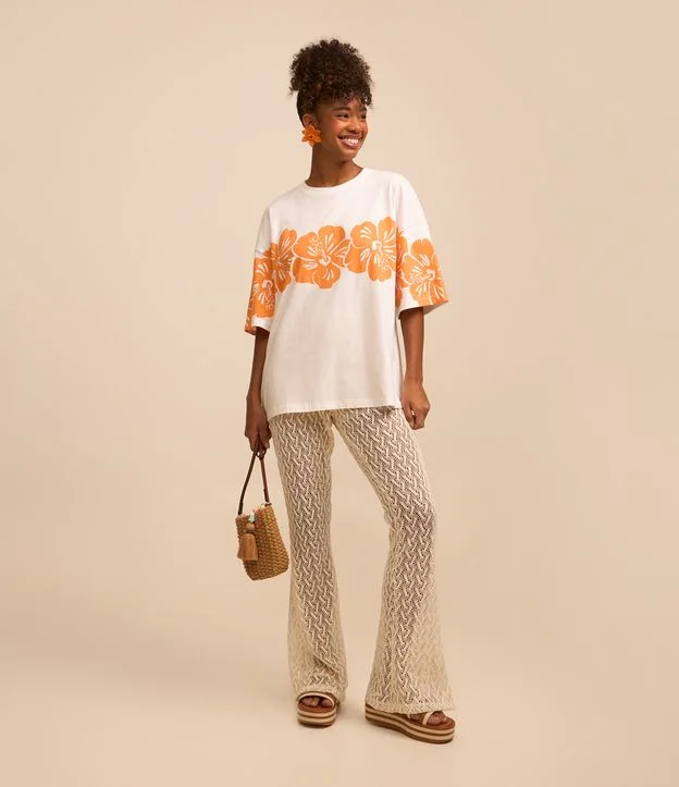 Calça Reta em Renda com Ponto Aberto