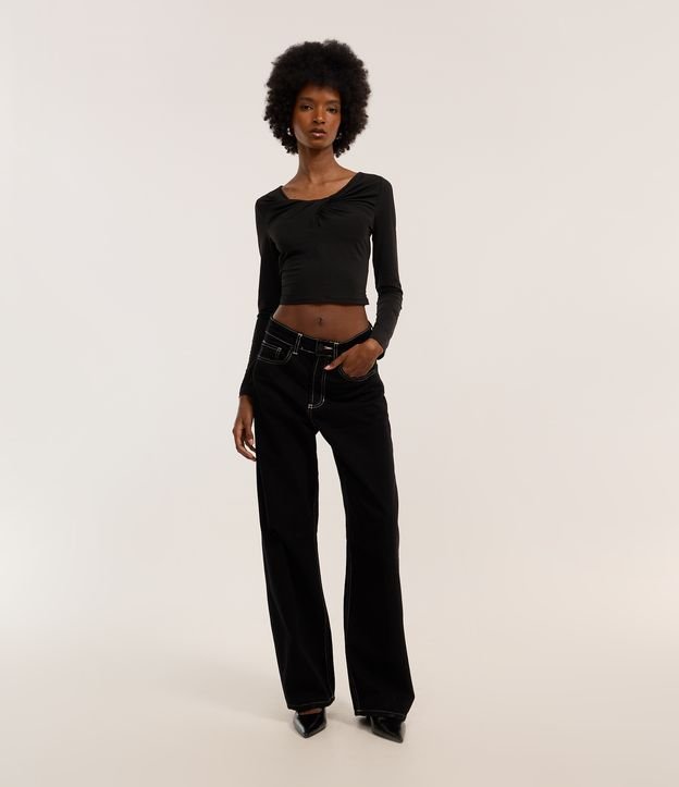 Calça baggy, confeccionada em material mais sustentável e com boas práticas ambientais, bolsos frente e costas e costura contrastante.