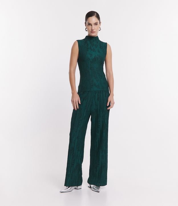Calça Reta em Tecido Devorê com Cós Elástico e Textura Plissada