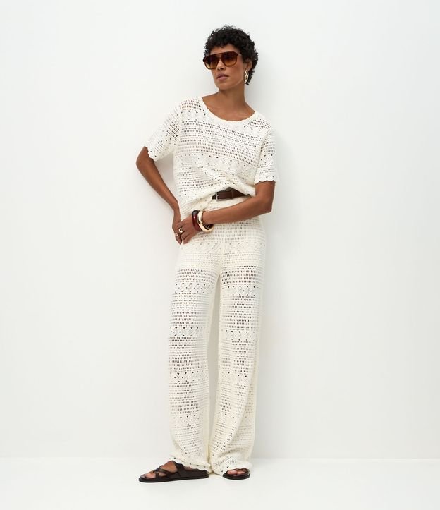 • Calça Reta em Tricô com Trama Aberta Branco 1