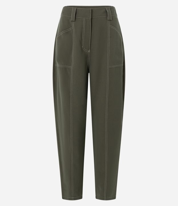 Calça Reta em Viscose com Detalhes em Pespontos Contrastantes Verde Oliva