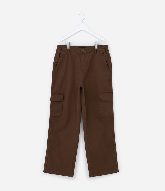 Calça Reta Infantil em Sarja com Bolso Cargo - Tam 5 a 14 anos Marrom