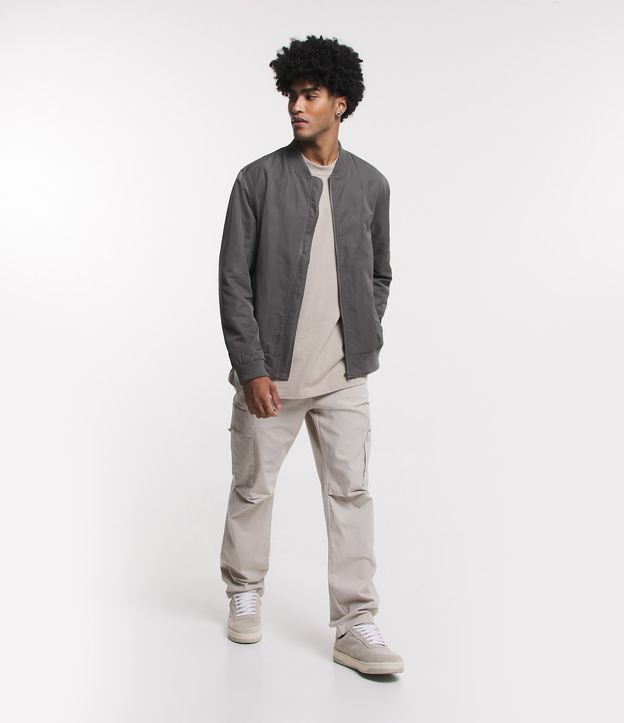 Calça Reta Loose em Sarja com Bolsos Cargo