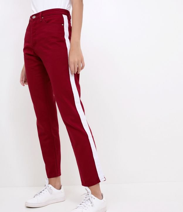 Calça Reta Vermelha com Faixa na Lateral