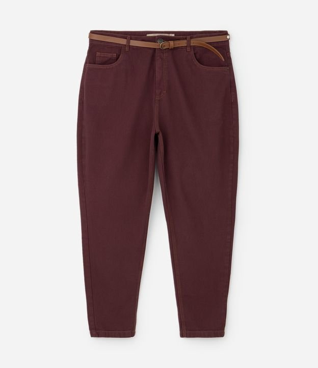 Calça Sarja Mom com Cintinho e Costura Contrastante Vermelho