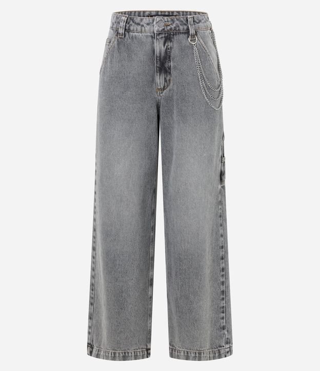 Calça Skater Jeans com Correntes na Lateral Cinza