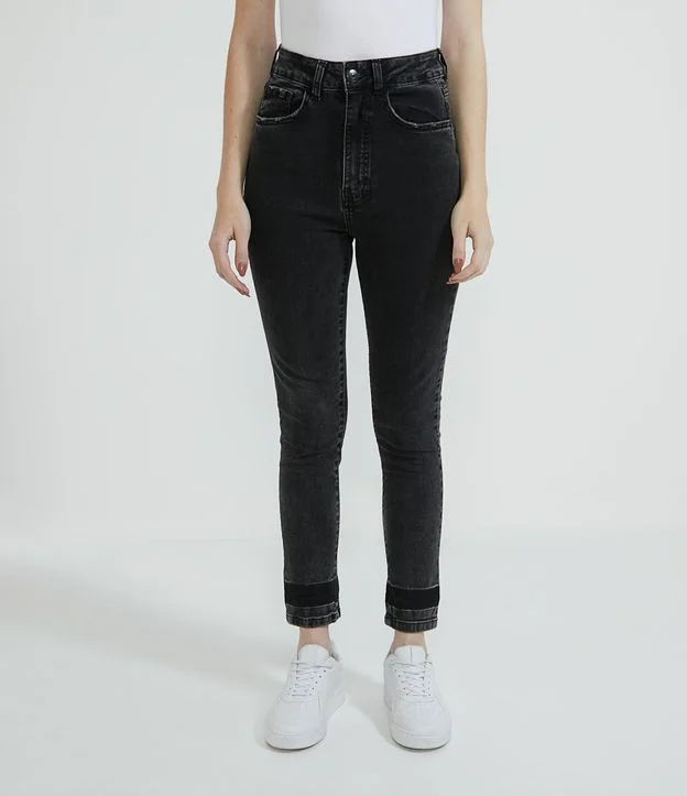 Calça Skinny em Jeans com Barra Desfeita Preto