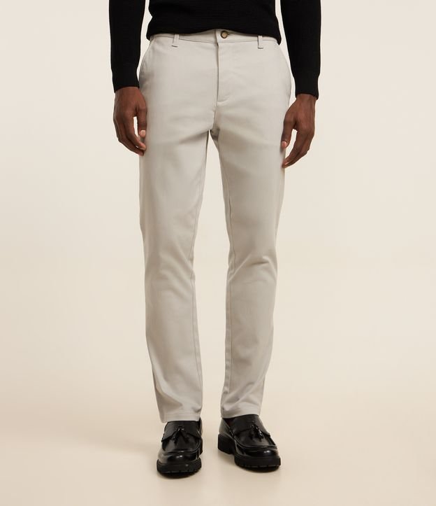 Calça Slim Alfaiatada em Sarja com Bolsos Cinza Claro