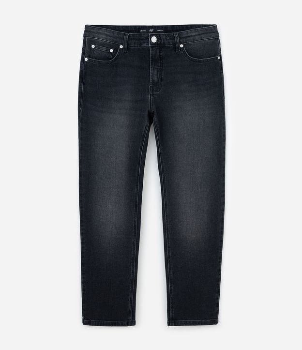 Calça Slim Cropped em Jeans com Efeito Estonado Preto