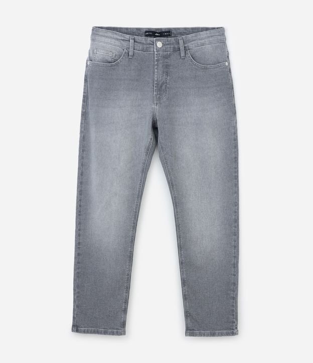 Calça Slim Cropped em Jeans com Efeito Estonado Cinza Médio