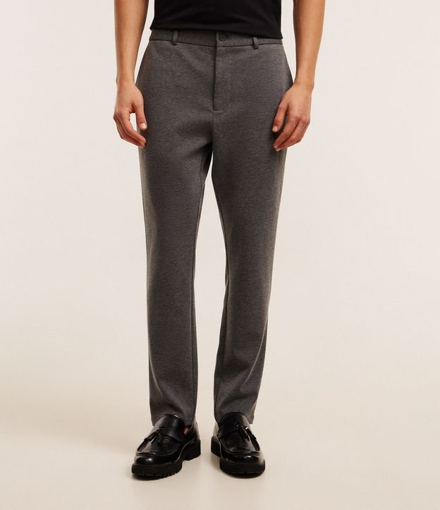 Calça Slim de Malha com Cós Meio Elástico Cinza Escuro