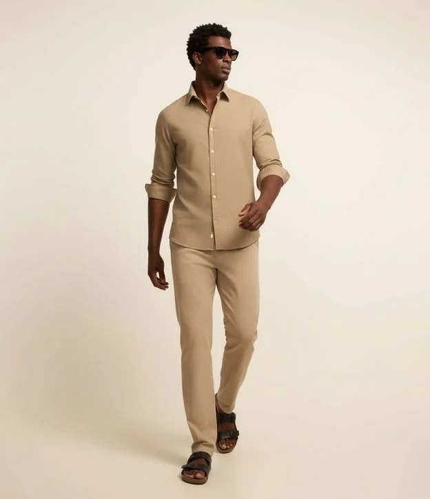 A calça slim é mais ajustada que a reta, mas não tão colada ao corpo como uma skinny. As calças slim masculinas podem ser encontradas em diversos materiais, criando combinações mais formais ou mais casuais. Experimente com camisas sociais ou camisetas e tenha um visual moderno e confortável!
