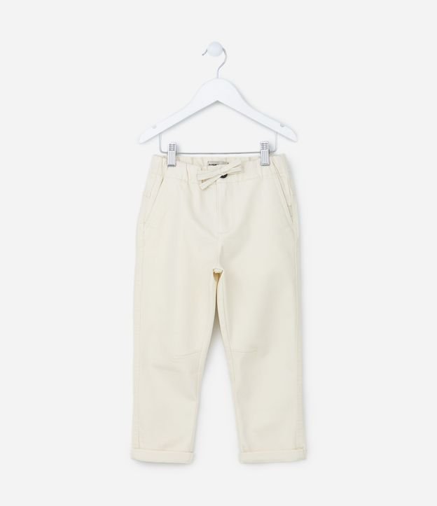 Calça Slim Infantil em Sarja com Barra Dobrada - Tam 5 a 14 Anos Off White