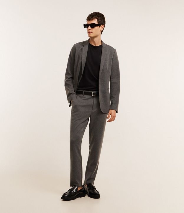 Calça Slim de Malha com Cós Meio Elástico Cinza Escuro