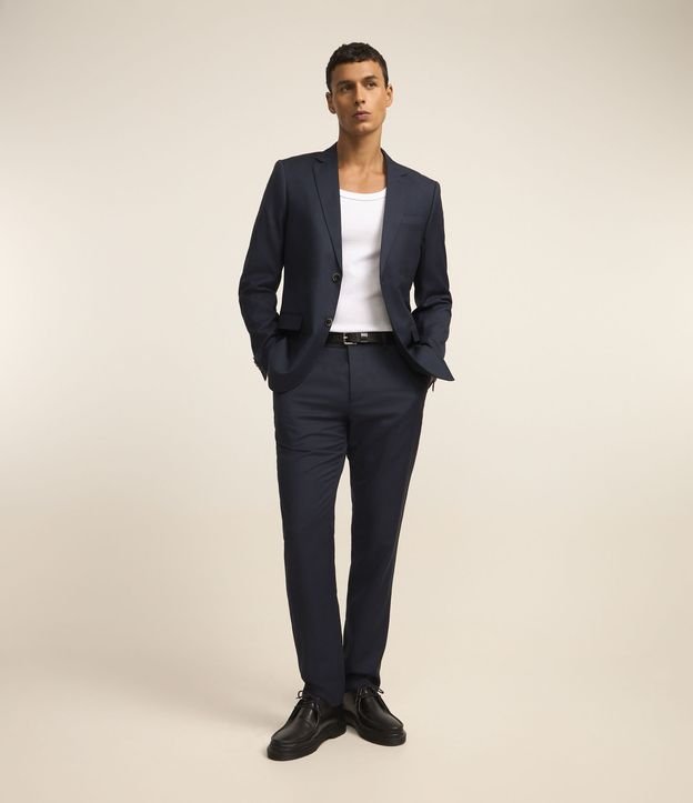 Calça Social Slim em Poliviscose com Bolsos Azul Escuro
