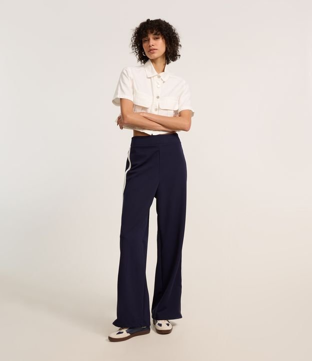 Calça Sportcore em Alfaiataria com Detalhe Lateral Azul Marinho