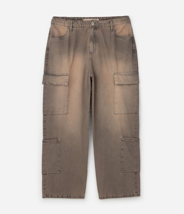 Calça Wide em Jeans com Bolsos Cargo Curve & Plus Size Marrom