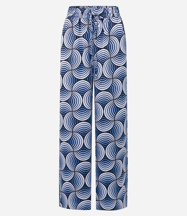 Calça Wide Leg Acetinada com Amarração e Estampa Geométrica
