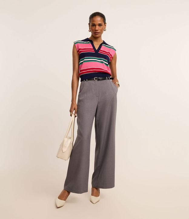 Calça wide leg de corte alfaiatado e cintura alta, com passantes no cós, fechamento tradicional, fechamento tradicional e pences. Inclui cinto fino de material sintético com fivela metalizada.