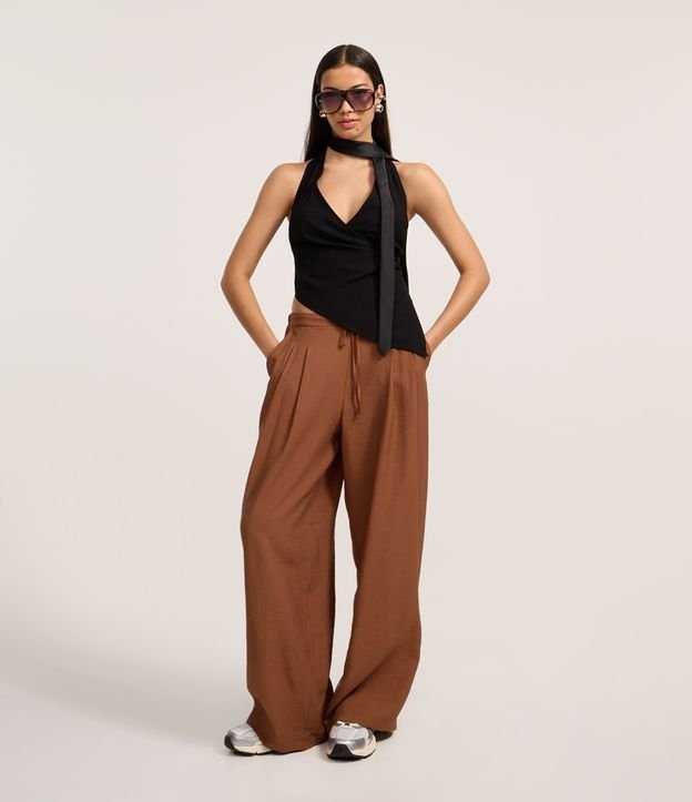 Calça Wide Leg Alfaiatada com Amarração Marrom
