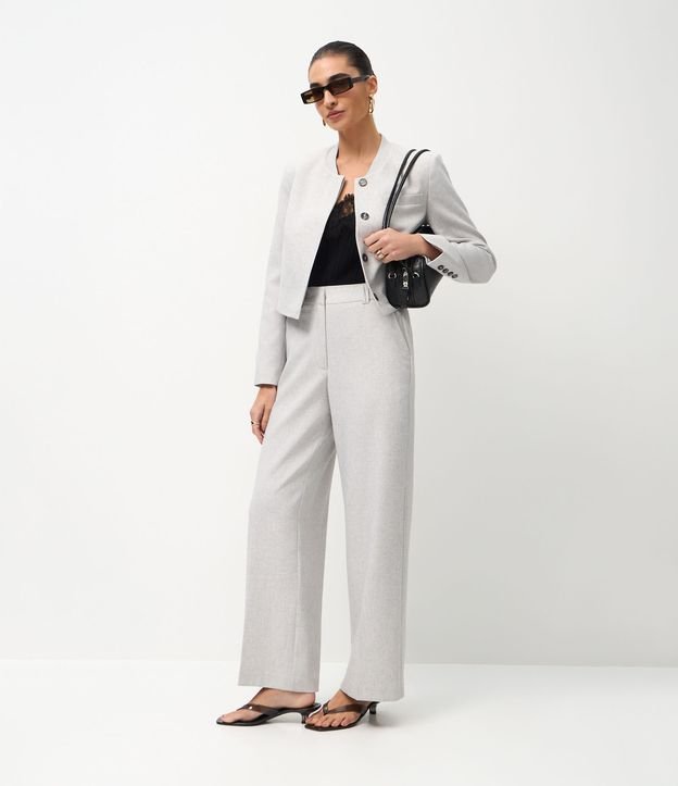 Calça Wide Leg Alfaiatada em Crepe com Bolsos Cinza