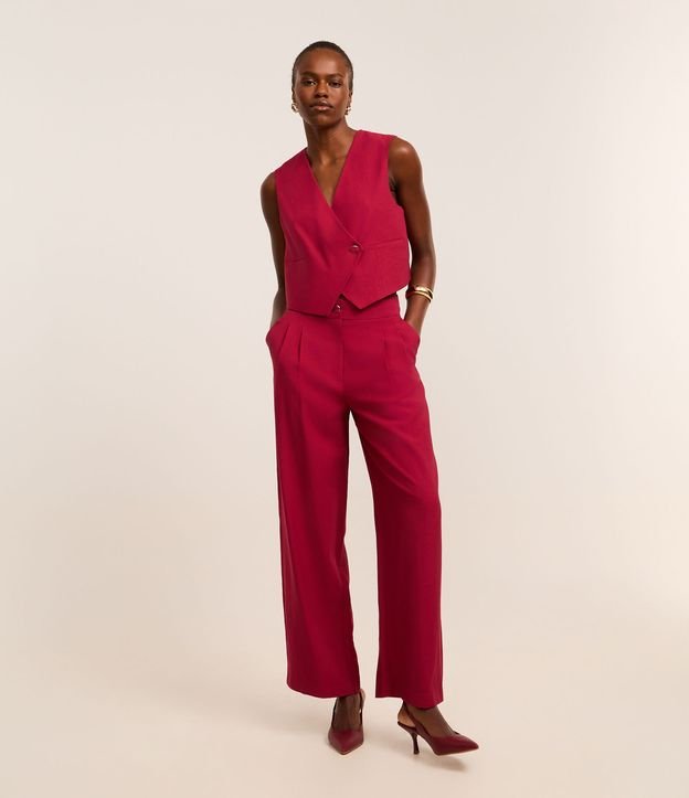Calça Wide Leg Alfaiatada em Vicose com Pregas Vermelho
