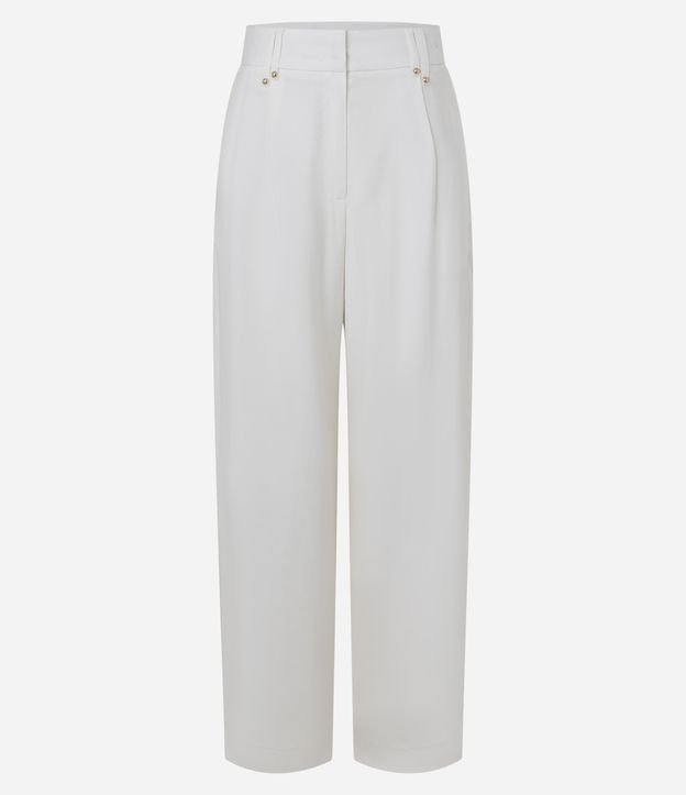 Calça Wide Leg Cintura Alta em Crepe com Cós Alfaiatado Off White
