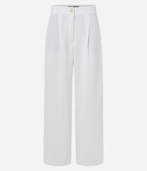 Calça Wide Leg Cintura Alta em Crepe Texturizado com Pregas Off White