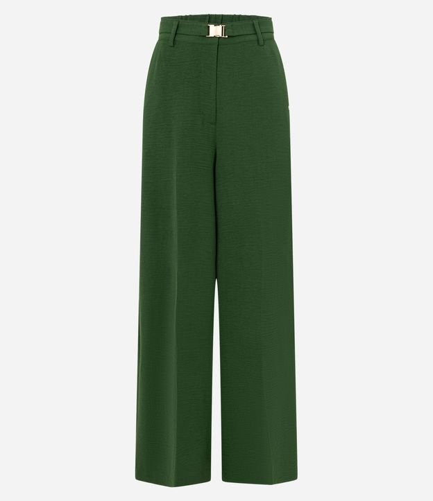 Calça Wide Leg em Airflow com Cinto e Fivela Verde