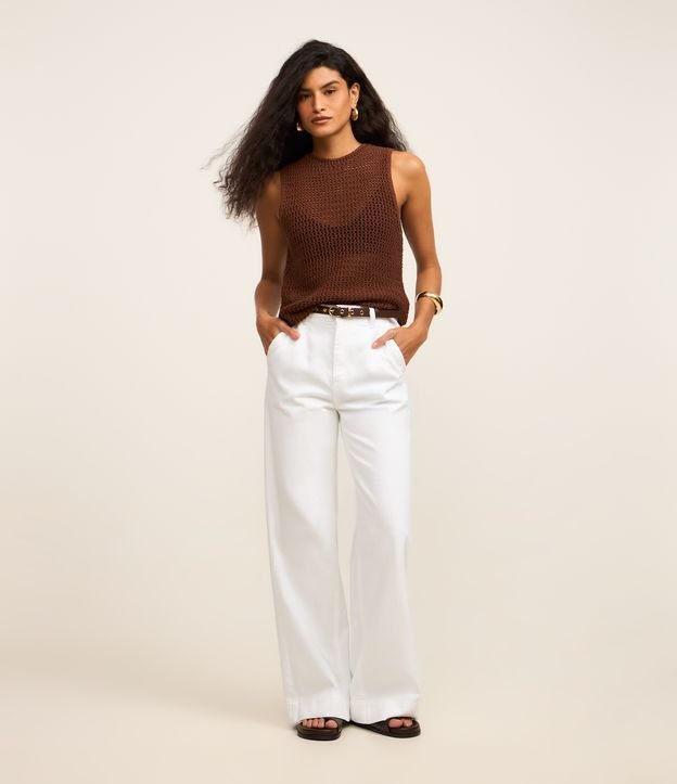 Calça Wide Leg em Jeans com Bolso Faca Branco