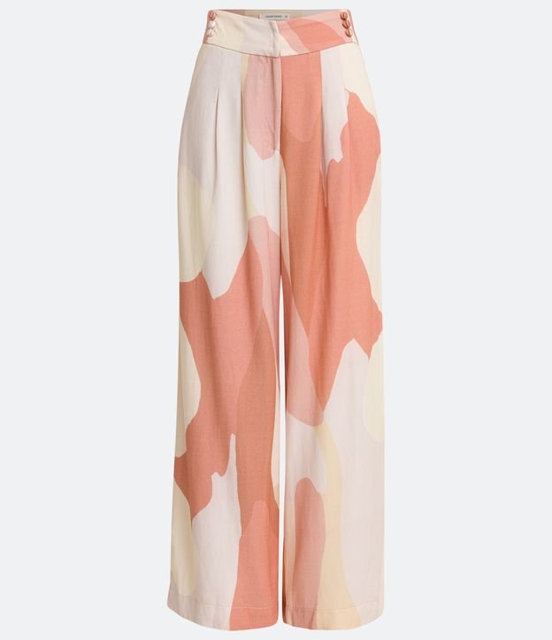 Calça Wide Leg em Linho com Estampa Abstrata e Detalhe no Cós