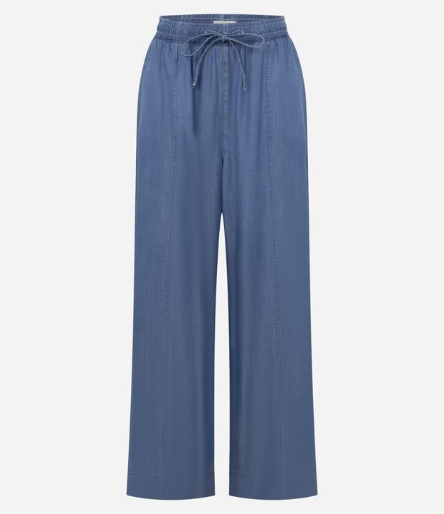 Calça Wide Leg em Liocel com Nervura Azul