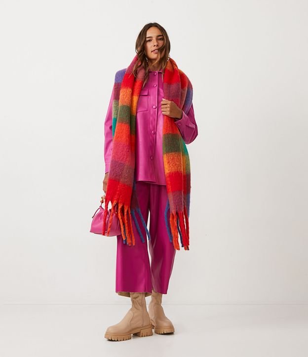 Calça Wide Leg em Material Sintético com Bolso Frontal Rosa