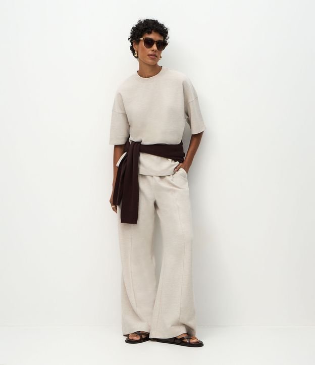 Calça Wide Leg em Moletom Sem Felpa Off White