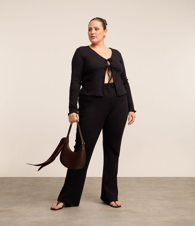 Calça Wide Leg em Ribana com Cós Elástico Curve & Plus Size