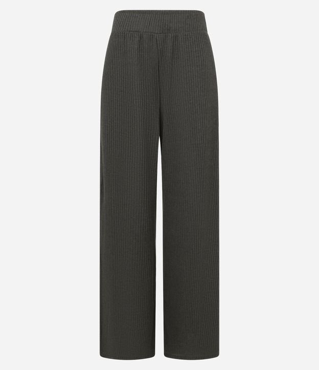Calça feminina confeccionada em ribana, texturizada, com cós elástico e cintura média.