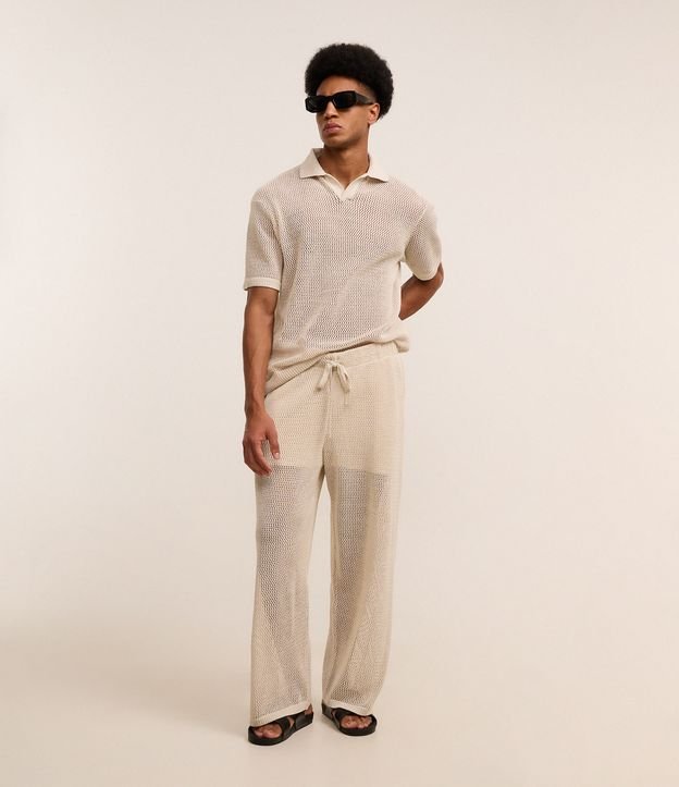 Calça masculina confeccionada em tricô mais sustentável com boas práticas ambientais, no modelo wide leg. Possui cós elástico, com cordão ajustável e bolso.