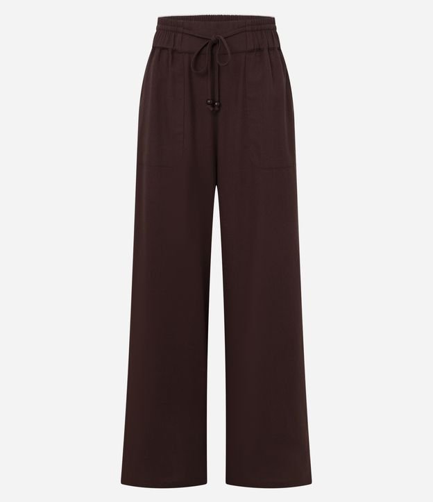 Calça Wide Leg em Viscolinho com Amarração Marrom Escuro