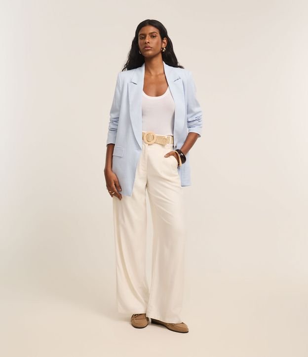 Calça Wide Leg em Viscolinho com Cinto de Ráfia