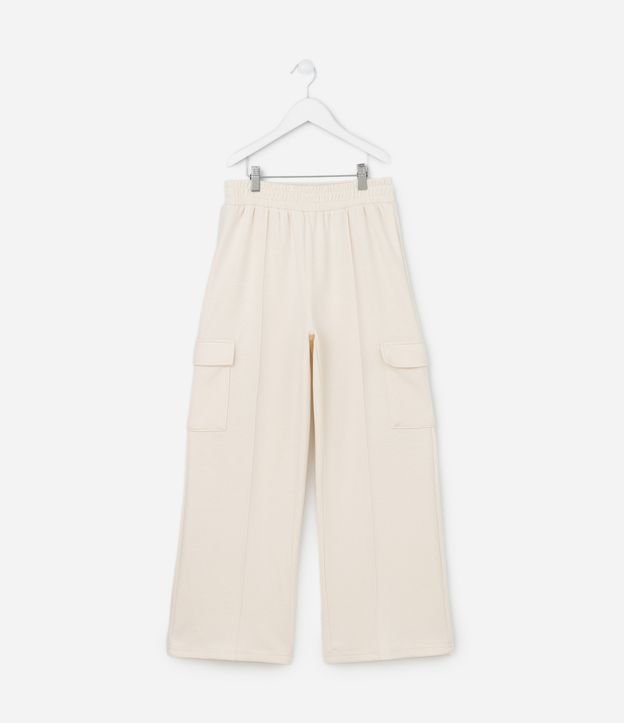 Calça Wide Leg Infantil com Bolsos Cargo - Tam 5 a 14 Anos Bege